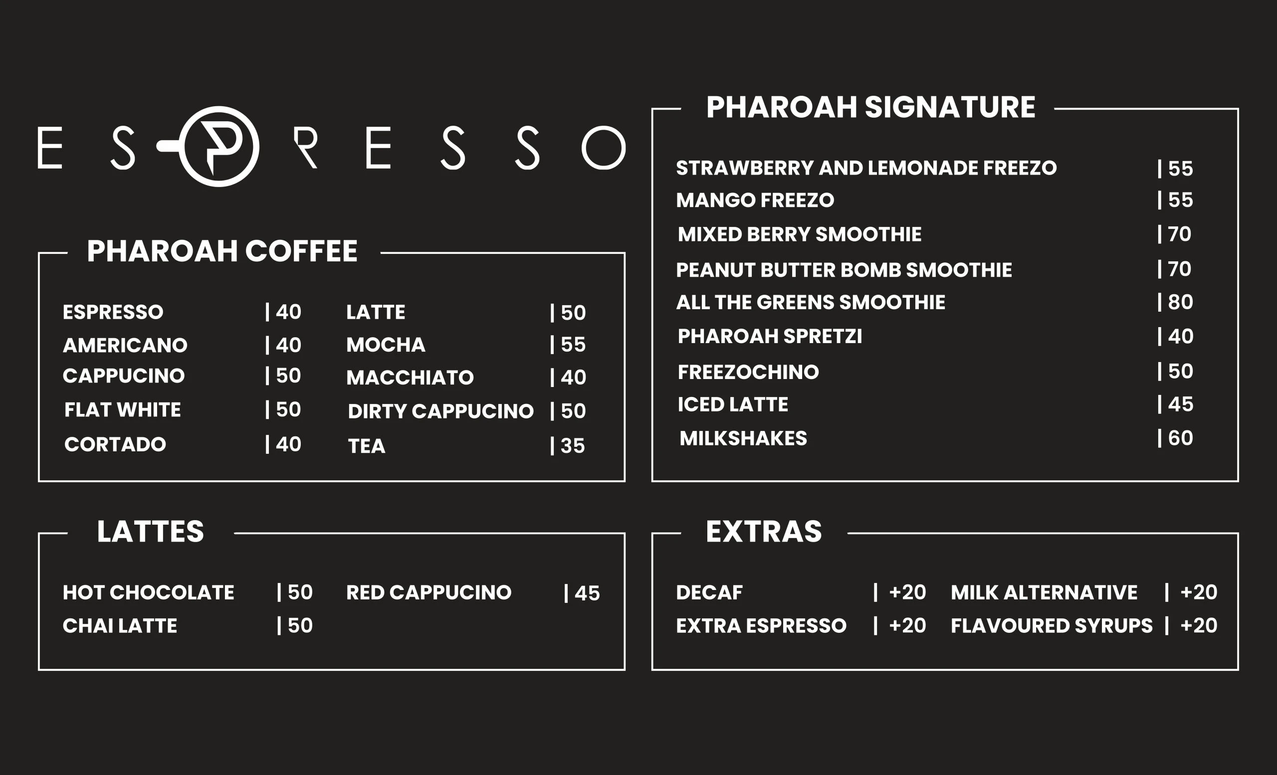 A café designed for people who appreciate detail and the PHAROAH lifestyle.