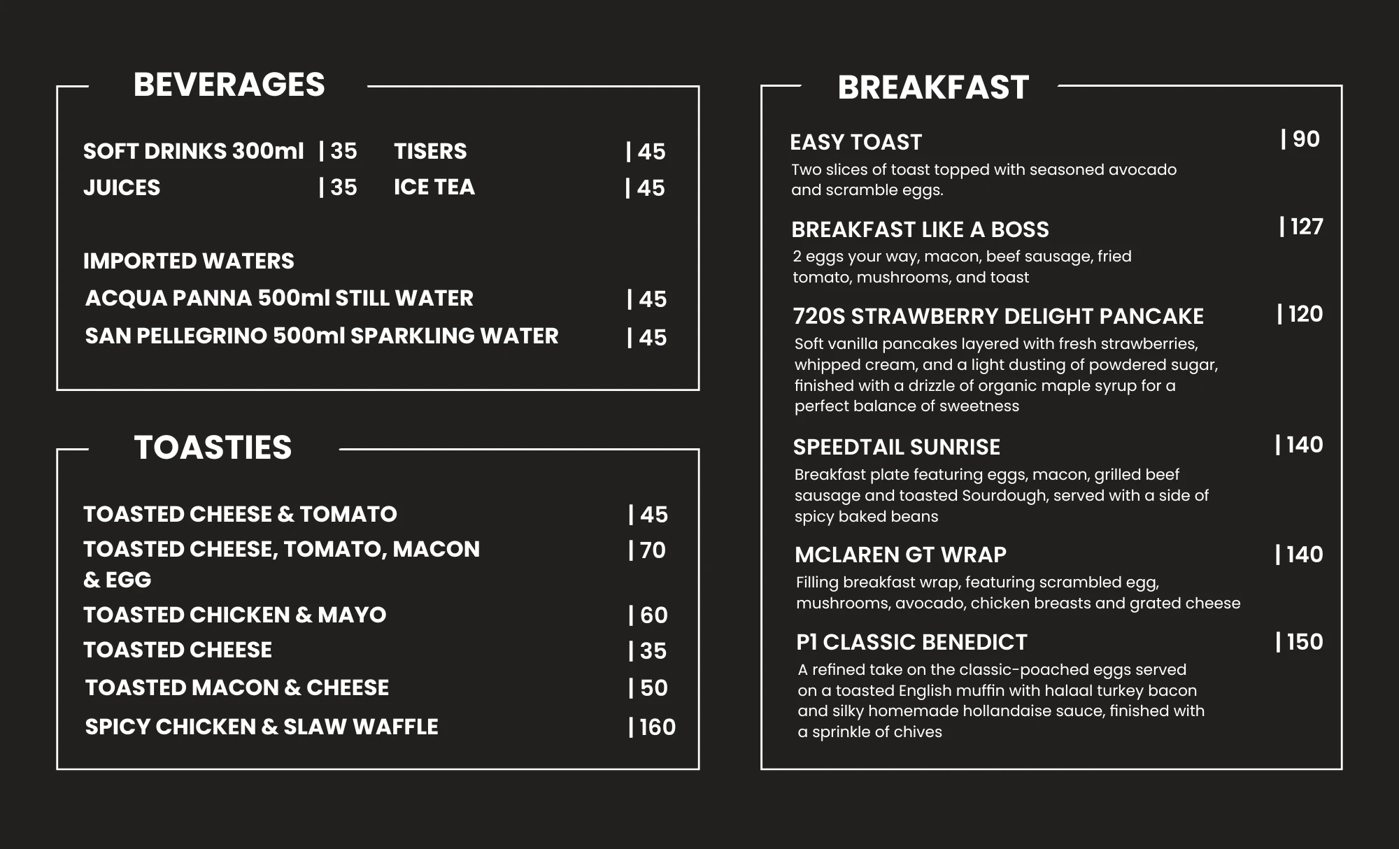 From signature breakfasts to fresh toasties and loaded burgers, everything on the menu is made to impress.